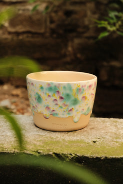 Rohmaterial: Ton und Glasur Volumen: ca. 260 ml Größe: ca. Durchmesser 9 cm Höhe 6,5 cm Pflegehinweis: Lebensmittelecht und nicht spülmaschinengeeignet